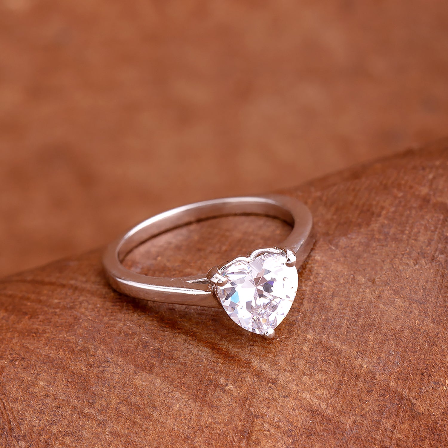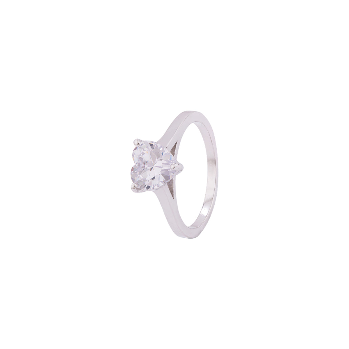 Zircon gemstone adorned finger ring for women. Fashioned out of brass and silver plated. Good for casual and formal looks.