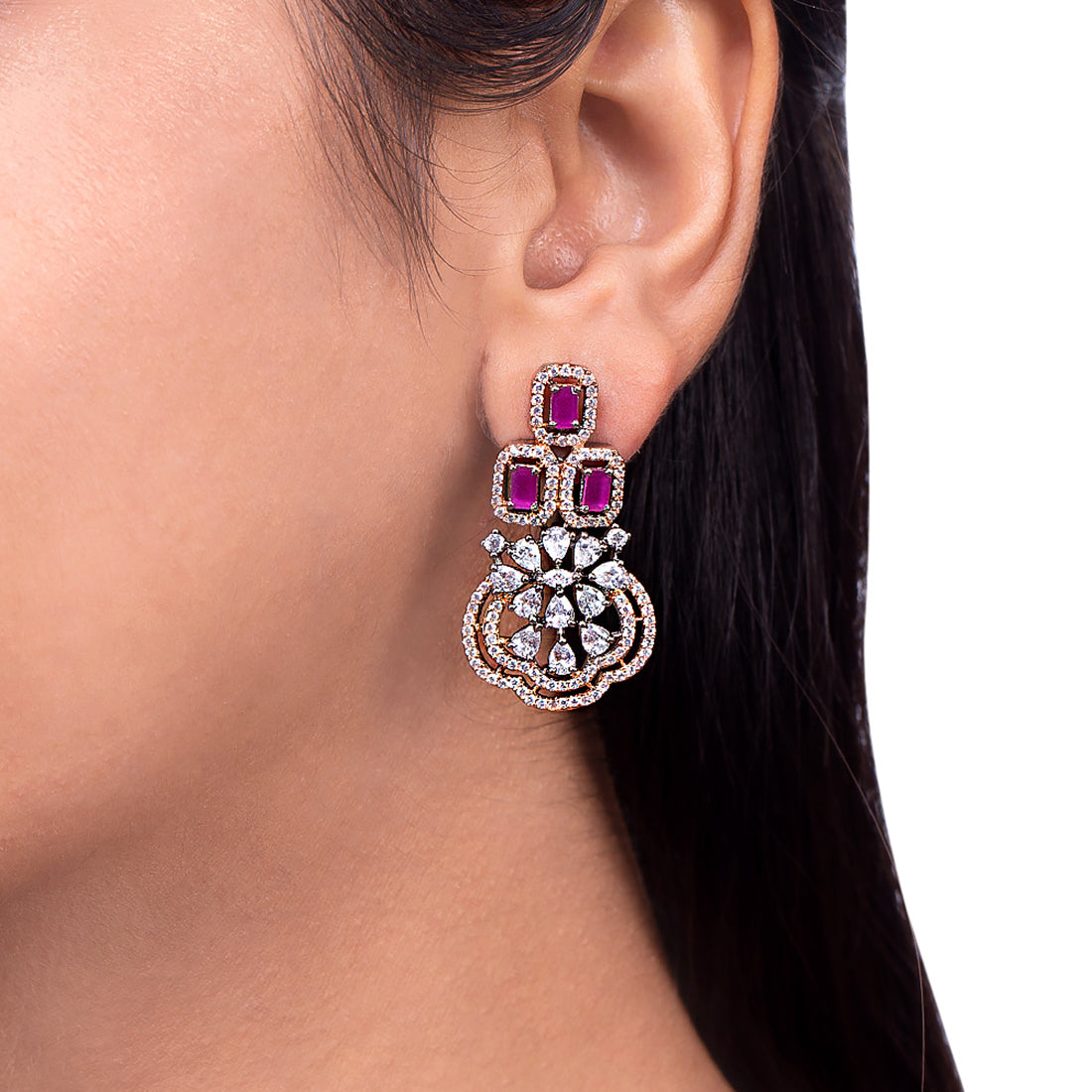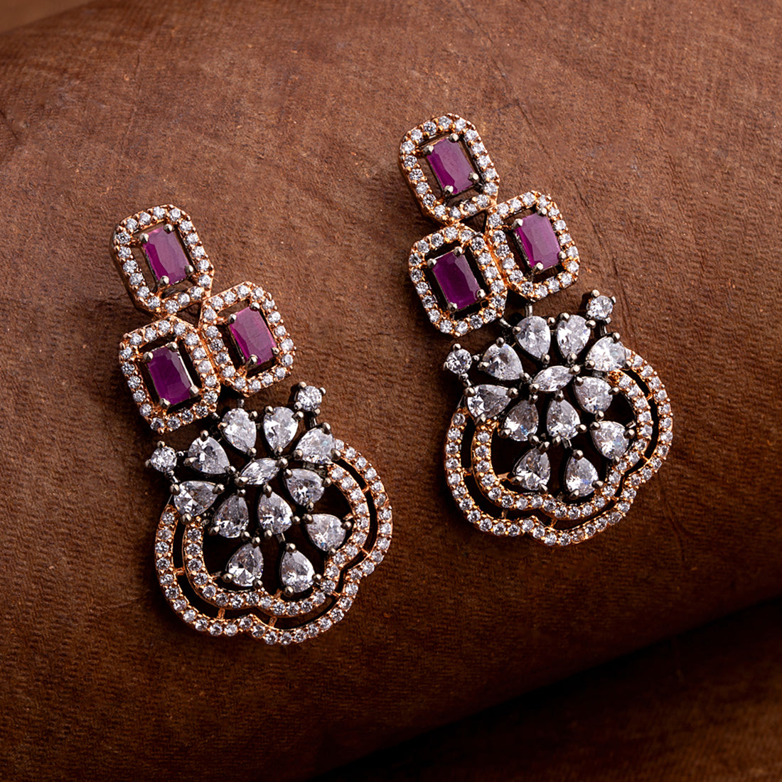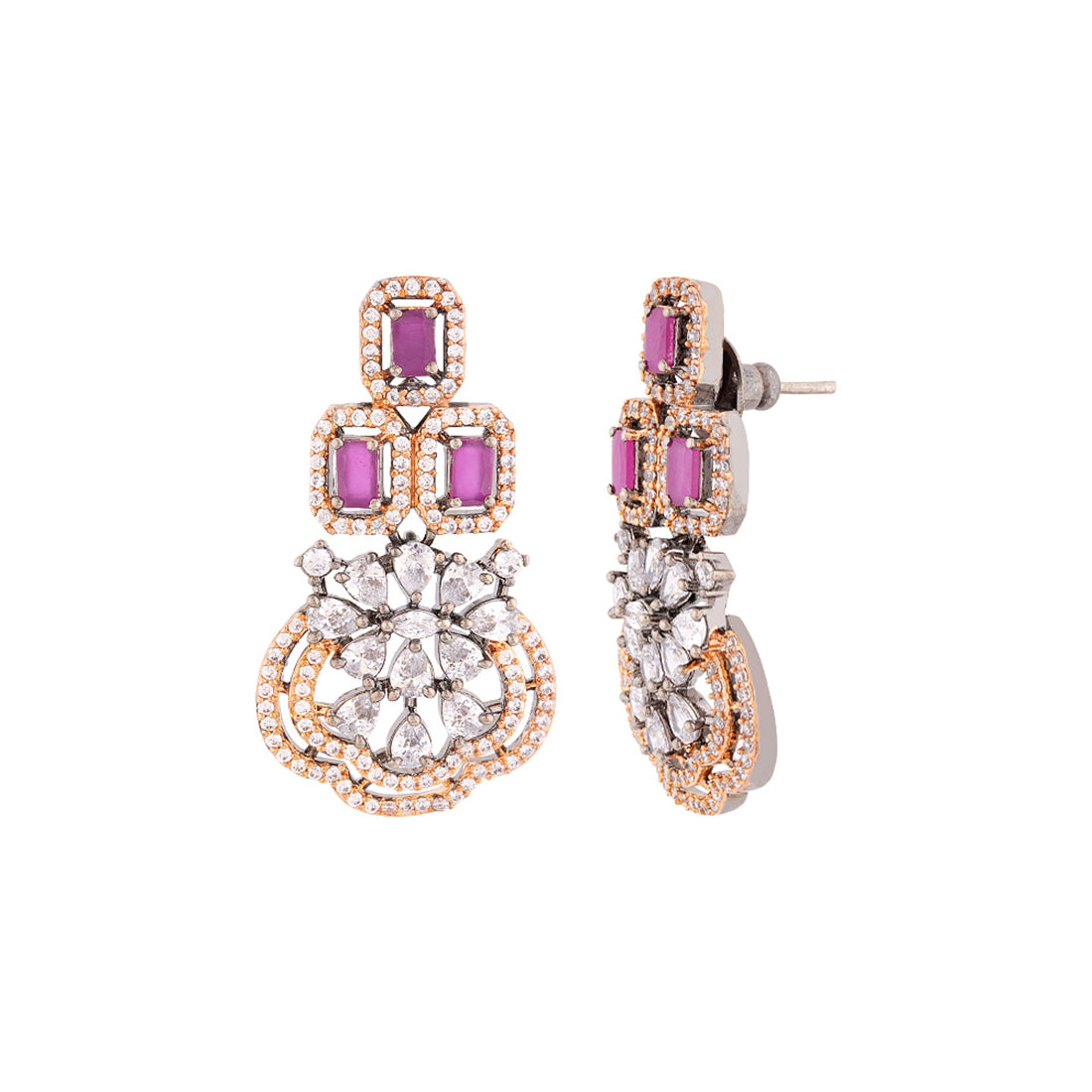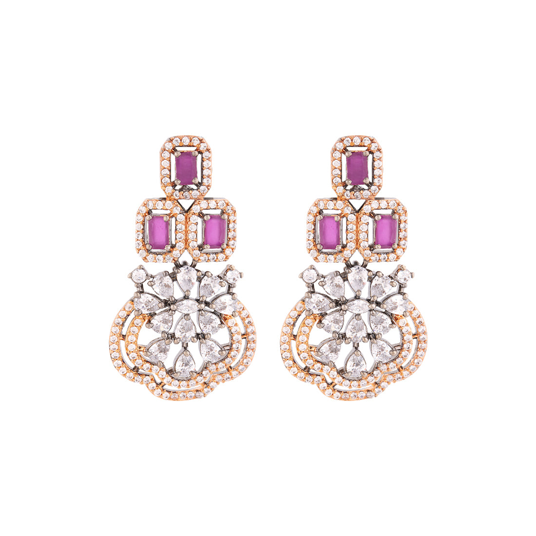 Cocktail earrings fashioned out of brass and black rhodium plated. Embellished with CZ gems. Wear the drop earrings with a formal gown.