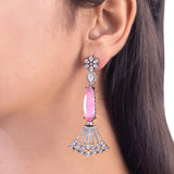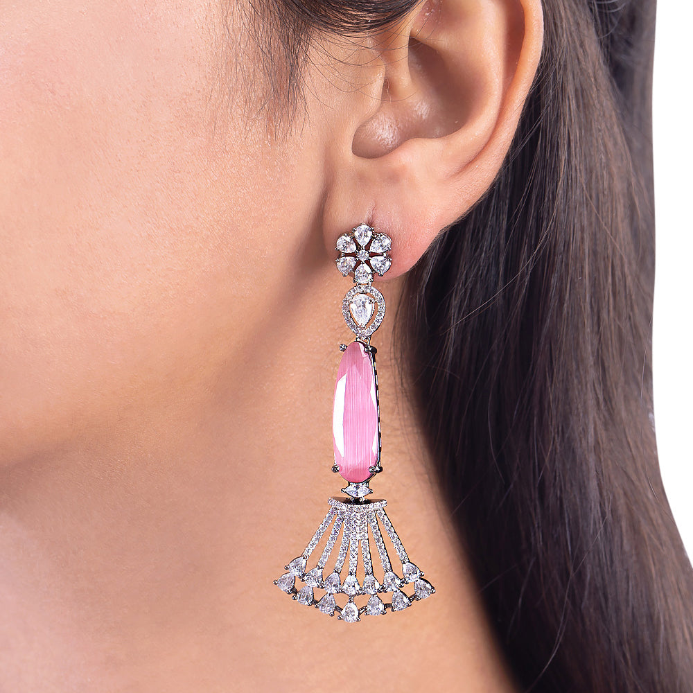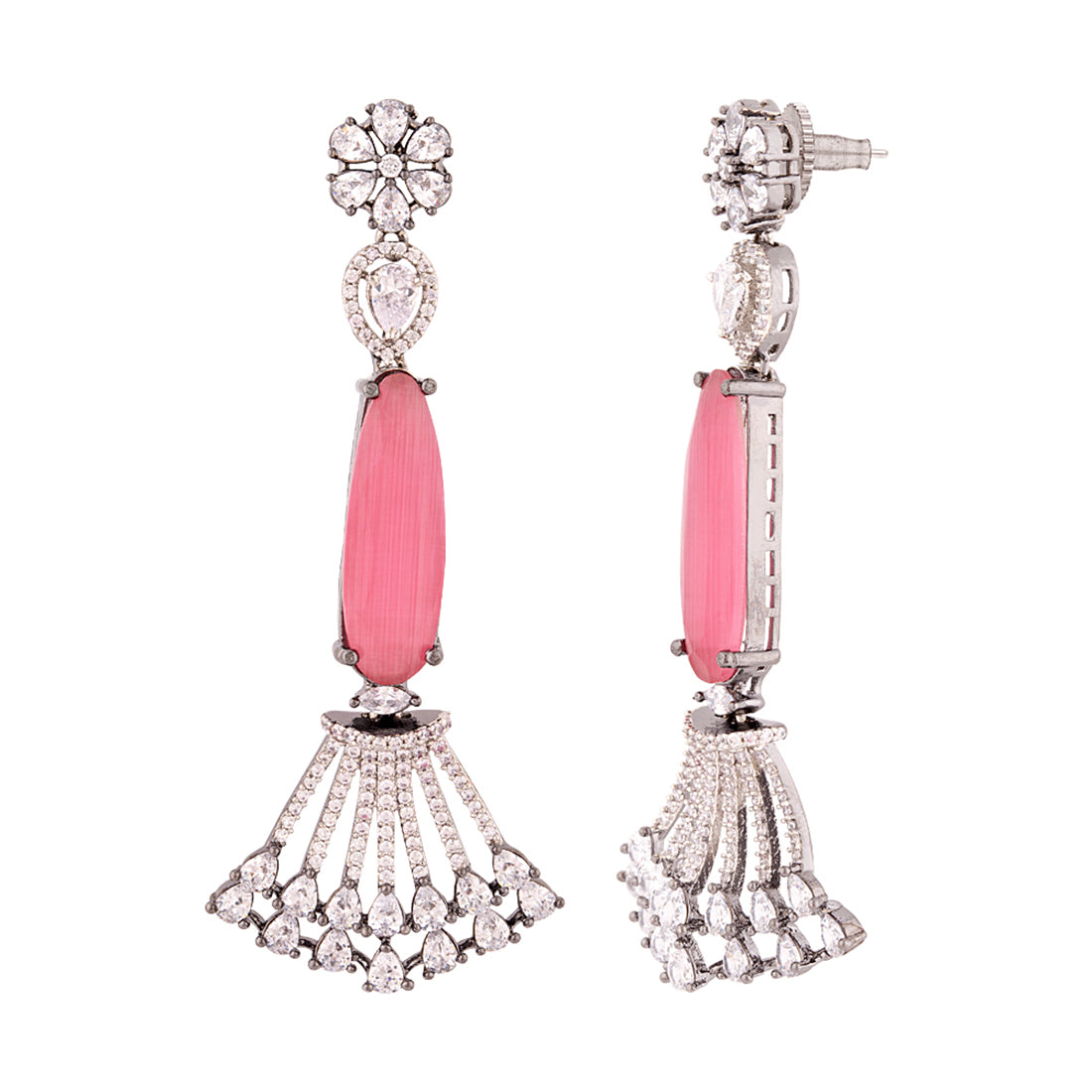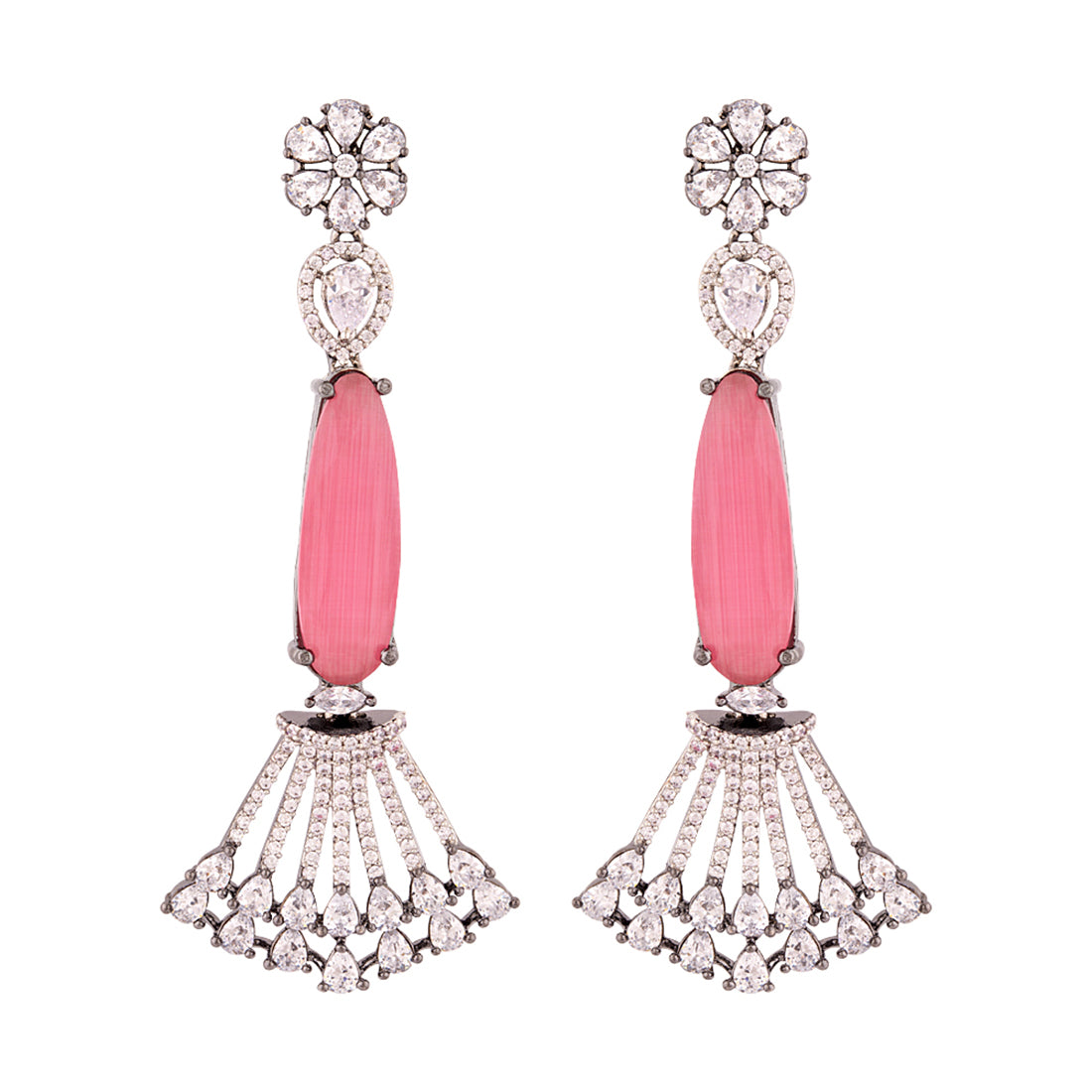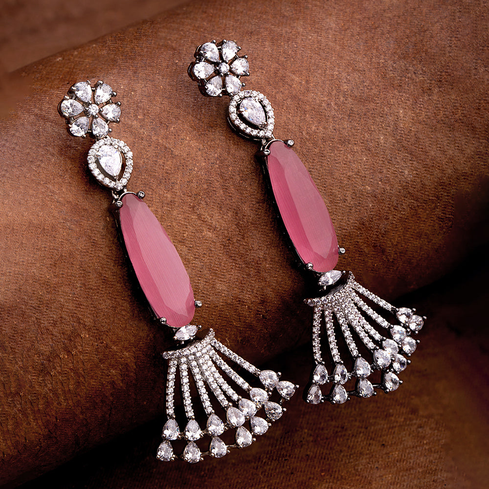 Cocktail earrings fashioned out of brass and black rhodium plating. Embellished with American Diamond gems. Good for formal wear.