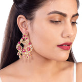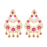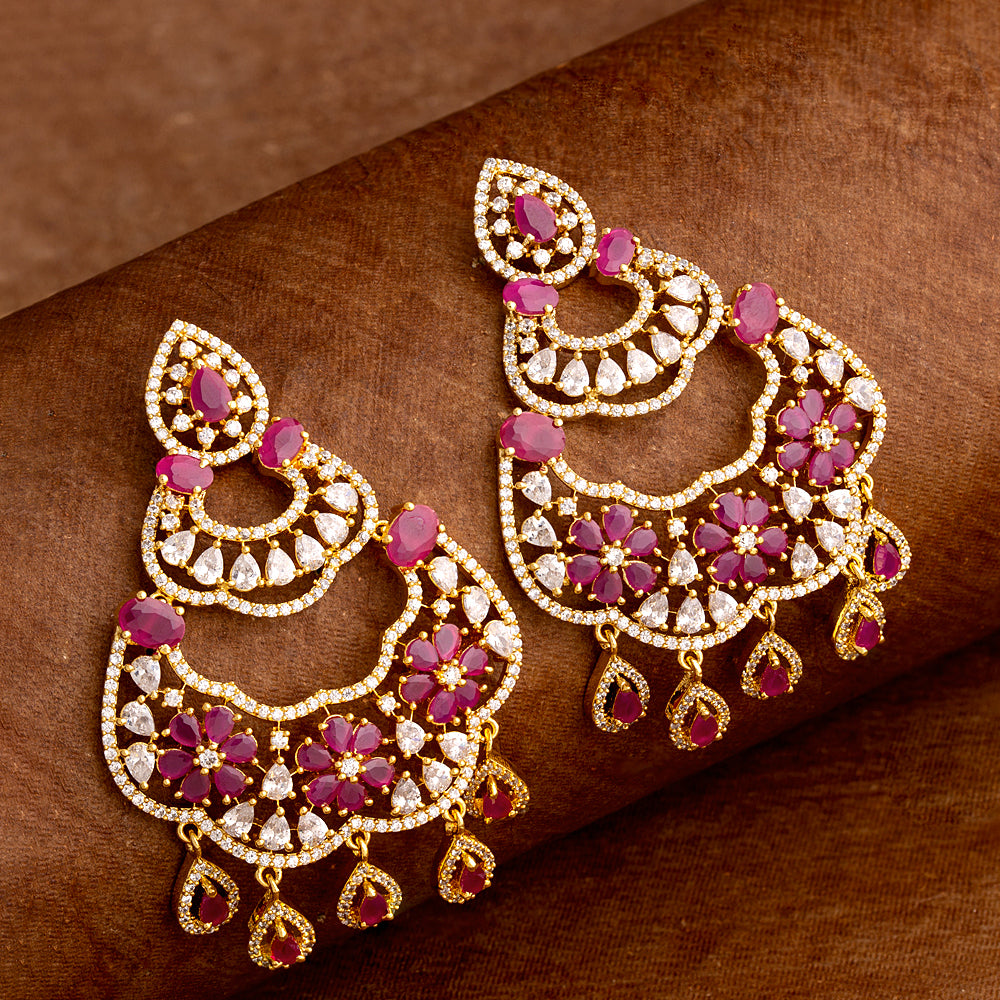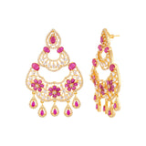 Zircon gemstones adorned floral motif drop earrings. Made from brass and yellow gold plated. Wear with formal outfits.