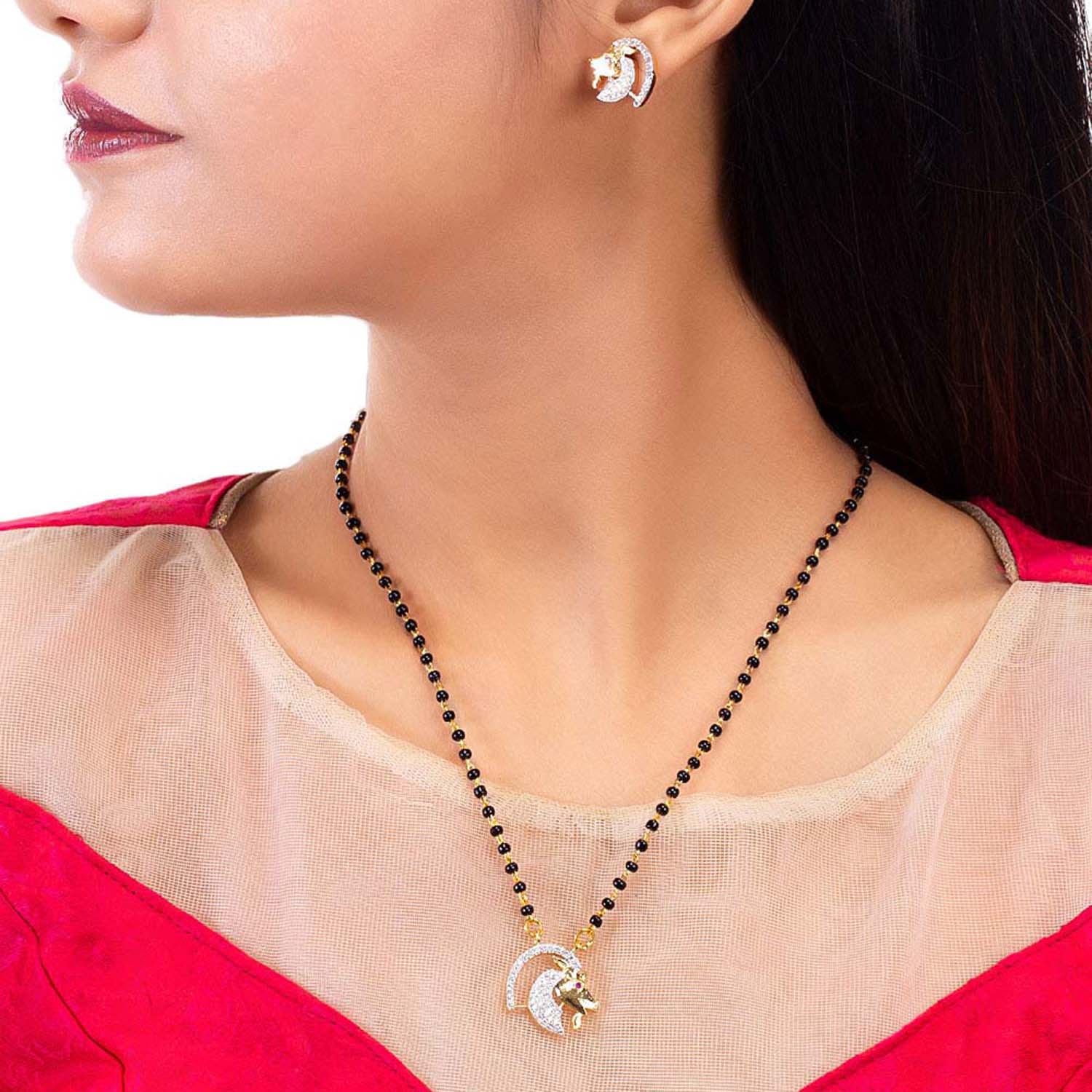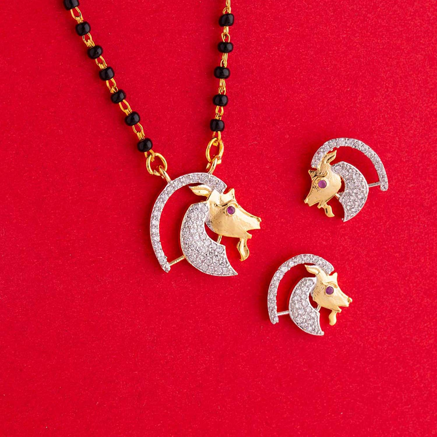 Capricorn zodiac sign brass mangalsutra with two tone plating. Embellished with American Diamond gems. Pair with a trendy kurta or saree.