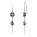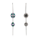 Linear drop earrings with green and pale pink enamel, inspired by the African basket art of Zulu. Made from brass and oxidized silver plated, the pair is versatile, lightweight and comfortable.
